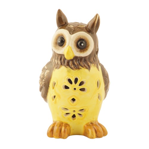 Add one of these adorable solar color changing figurines to you flowerbed, garden or any favorite outdoor setting. Each hand painted ceramic figurine has a cutout pattern that is illuminated by color changing LED’s at night, the light is emitted from each cycle through a brilliant color-changing spectrum. Choose from 6 different styles (frog, rabbit, snail or owl). Great addition to any flowerbed or garden decor.