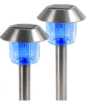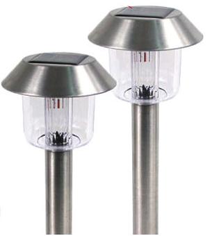 These 2 energy-efficient and low-maintaence stainless steel solar pathway lights will add style to any walkway, yard or garden without having to figure out wiring. During the day, the solar lights' panel harnesses the power of the sun to charge the internal Lithium Ion Battery, and at night, they automatically turn on, emitting a bright glow for your garden. They are perfect for adding a luminous and decorative glow to your driveway, patio, or flowerbeds.